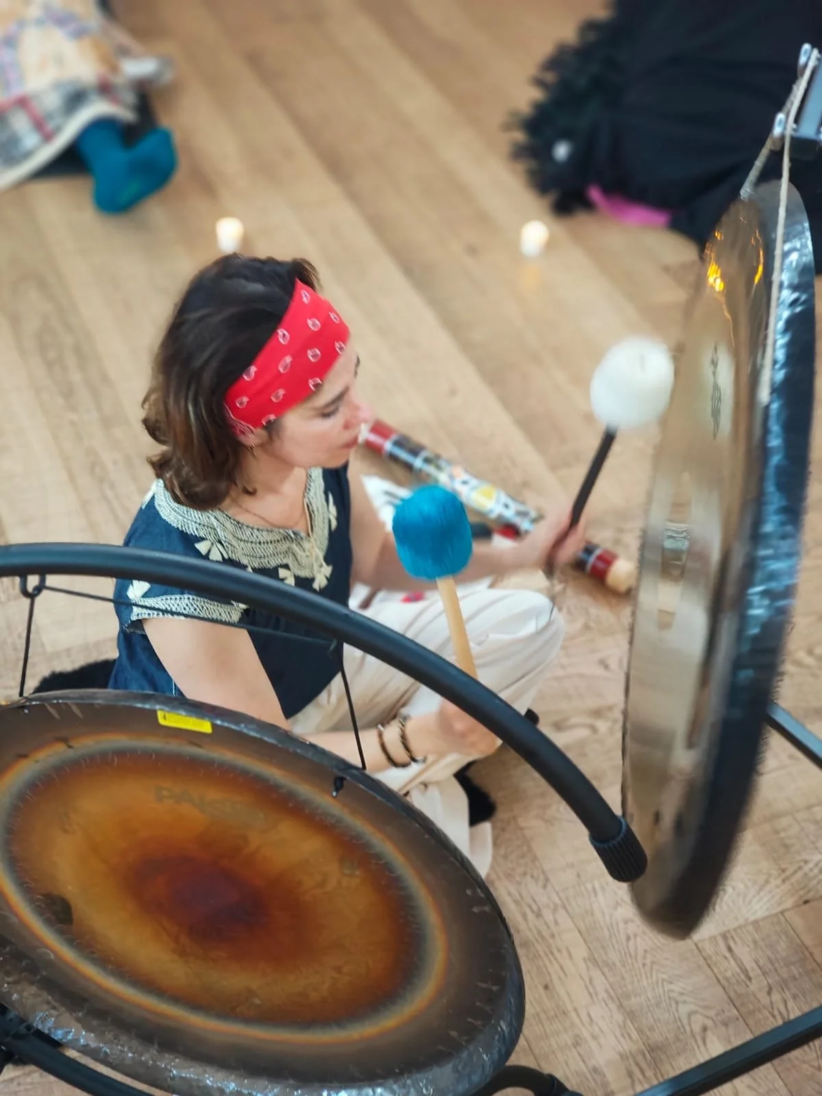 During a session, you’ll lie down on a mat, wrapped in blankets. As I play the gong, you’ll be immersed in layers of sound.